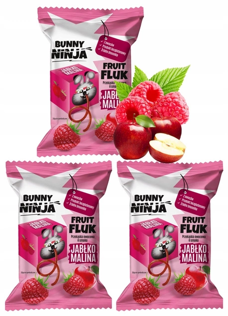 BUNNY NINJA Przekąska Owocowa JABŁKO MALINA Fruit Fluk 15g x3