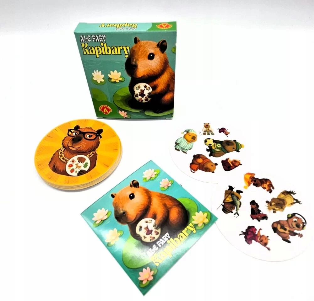 Witaj w świecie kapibar – przesympatycznych zwierząt, które z gracją i ze spokojem odnajdują się w najróżniejszych rolach. W tej dynamicznej i pełnej uroku grze karcianej liczy się jedno: kto pierwszy odnajdzie tę samą kapibarę na dwóch różnych kartach.
