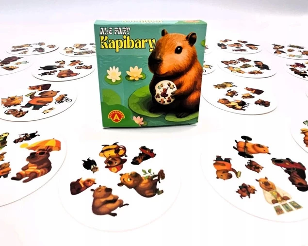 Witaj w świecie kapibar – przesympatycznych zwierząt, które z gracją i ze spokojem odnajdują się w najróżniejszych rolach. W tej dynamicznej i pełnej uroku grze karcianej liczy się jedno: kto pierwszy odnajdzie tę samą kapibarę na dwóch różnych kartach.