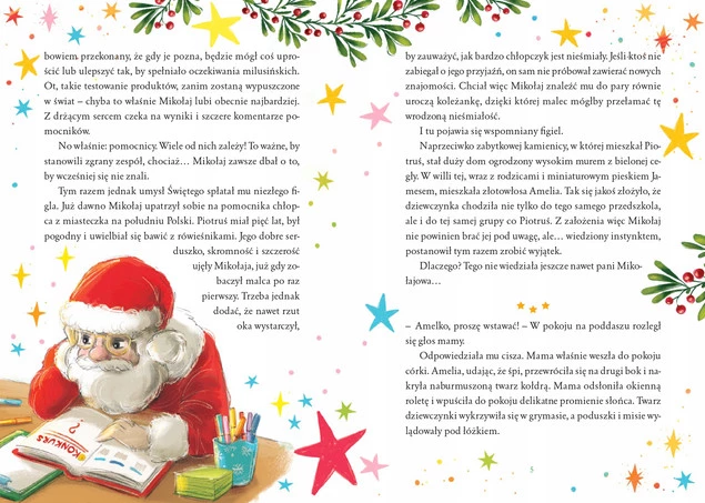"Pomocnicy Świętego Mikołaja" to świąteczna książka dla dzieci, która opowiada o wyborze dwojga wyjątkowych pomocników przez samego Mikołaja. Ta pełna ciepła i magii opowieść zabiera młodych czytelników w świat pełen zagadek i świątecznych niespodzianek. Rozalka, mała detektywka, stara się rozwikłać tajemnicę znikającej choinki, a pewna wnuczka próbuje odkryć sekret swojego dziadka.