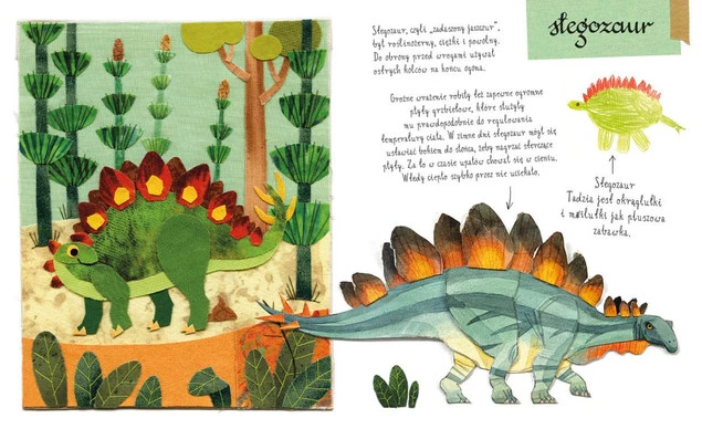 Autorzy, Ewa i Paweł Pawlakowie, zapraszają młodych czytelników do odkrywania świata dinozaurów poprzez unikalne ilustracje wykonane z różnorodnych materiałów, przypominające rzeźby i kolaże. Książka pobudza wyobraźnię, pokazując dinozaury tak, jak mogłyby wyglądać w inny sposób niż w tradycyjnych atlasach, co zachęca dzieci do twórczego myślenia i rozwijania wyobraźni.