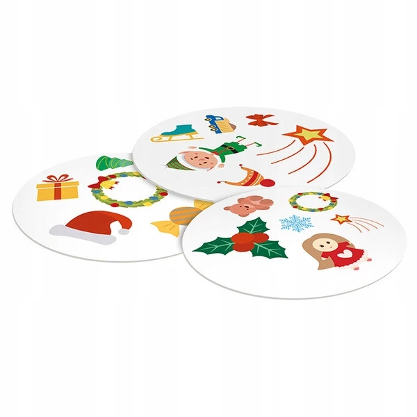 W opakowaniu znajdziemy zestaw 31 kart z 6 obrazkami w świątecznym klimacie.