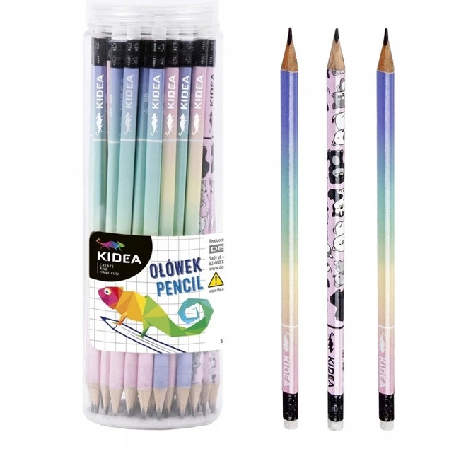 Ołówek Szkolny Trójkątny Z Gumką Twardość HB PASTELOWY ZWIERZĘTA Kidea x48