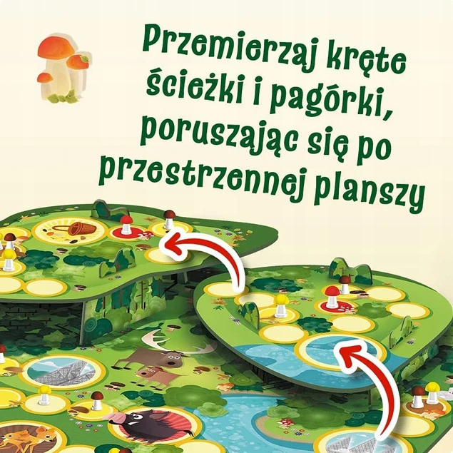 Klasyczny temat w nowoczesnej formie 3D – „polowanie” na grzybki jest znane i lubiane, a tutaj dostajesz je w atrakcyjnym wydaniu z przestrzenną planszą i polami zadań.