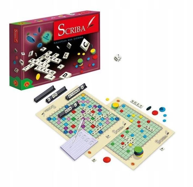 - Scriba – najlepsza gra słowna Duża/XL od Alexandra dla dzieci 8+. Układaj wyrazy na planszy, ćwicz słownictwo, koncentrację i logiczne myślenie. 2 wersje gry, dwustronna plansza, 100 liter, żetony i akcesoria w zestawie.