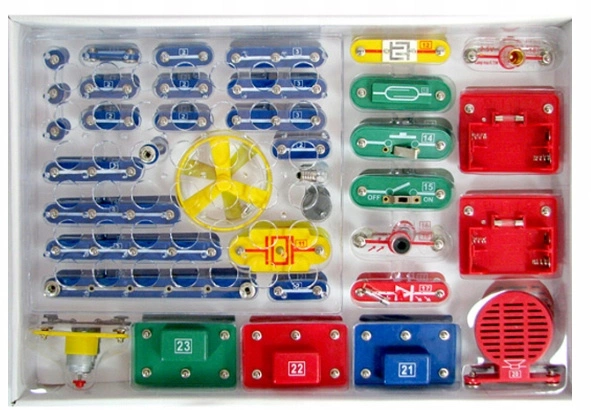 W oparciu o szczegółową instrukcję w języku polskim, dziecko w prosty sposób, niczym składanie klocków, buduje zestawy elektroniczne: np. urządzenie, które po zapadnięciu zmroku.