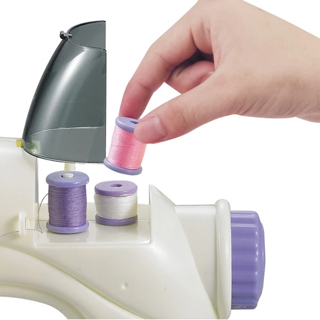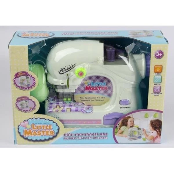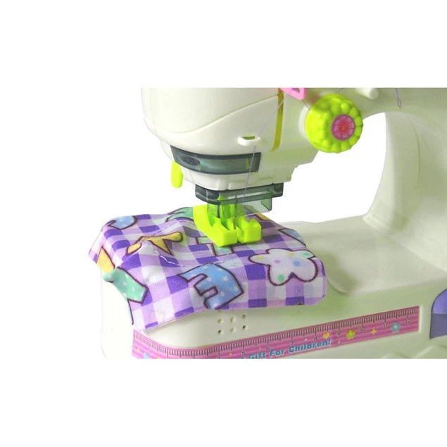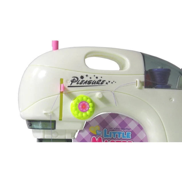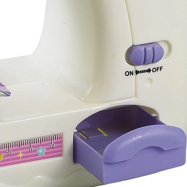 Maszyna do szycia działa jak prawdziwa, zasilana jest trzema bateriami AA (brak w zestawie). Maszyna uruchamia się manualnie za pomocą pokrętła lub praktycznym pedałem.