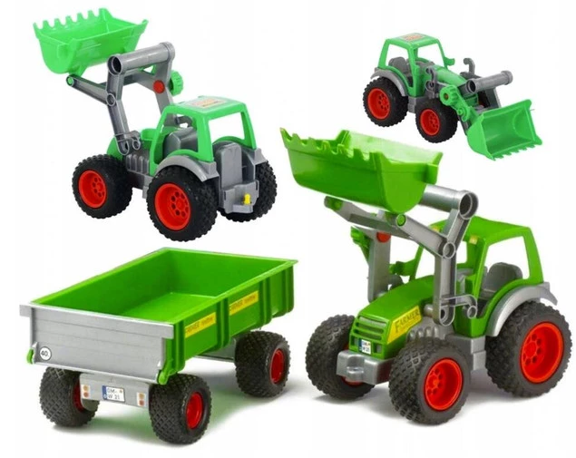 Rewelacyjny Traktor z Łyżką i Przyczepą to świetna zabawa w domu jak i na zewnątrz. Dzięki gumowym kołom zabawa staje się jeszcze bardziej atrakcyjna. Traktor z przyczepą i łyżką to idealny produkt do zabawy w pomieszczeniu jak i w piaskownicy. Produkt porusza się na gumowych, miękkich kołach, dzięki czemu zabawa jest jeszcze ciekawsza! Wyposażony w przednią łyżkę i przyczepę, dzięki czemu może pomagać w zróżnicowanych pracach. Dodatkowo otwierana burta przyczepki.