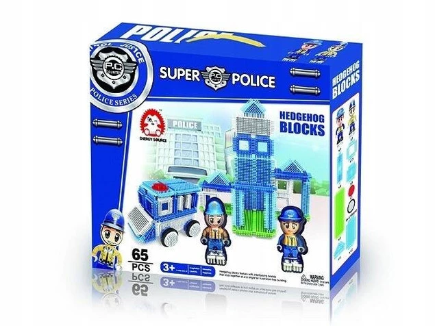 Wyjątkowe Klocki Konstrukcyjne ICOM otworzą przed dzieckiem drzwi do świata kreatywności i zapewnią wciągające zajęcie na bardzo długi czas. Na małego, zdolnego konstruktora czekają niezwykłe, zakończone zaokrąglonymi kolcami elementy, które ze względu na budowę nazywane są jeżykami. Klocki wczepiają się w siebie nawzajem, tworząc oryginalne, jedyne w swoim rodzaju budowle. W składającym się z 65 elementów zestawie znajdują się kolorowe jeżyki i 2 figurki policjantów.