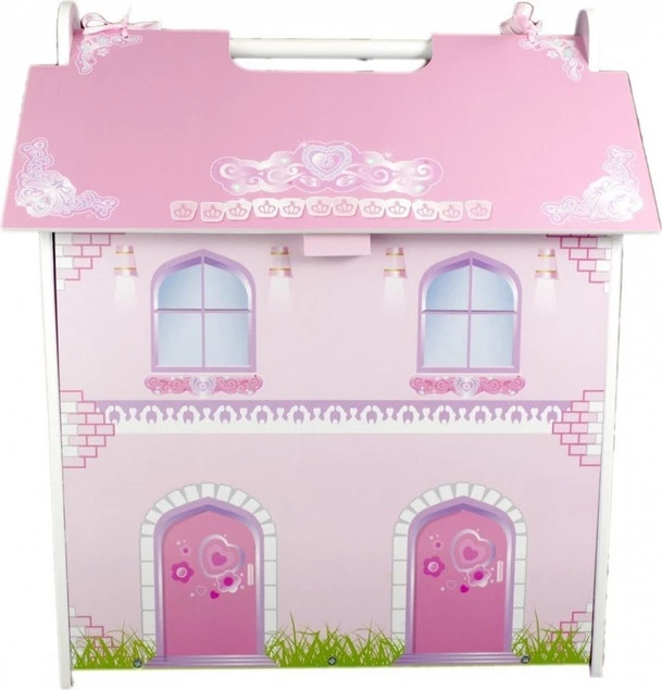 - drewniany domek z otwieraną boczną ścianą, wygodną rączką i otwieranym dachem