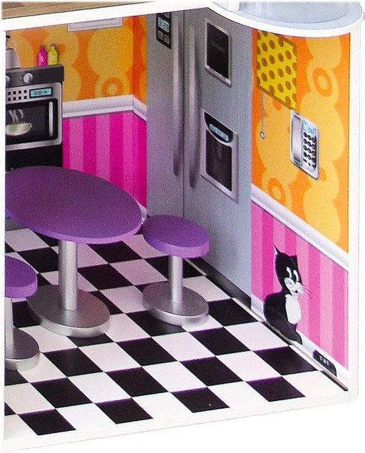 Śliczny, Duży DREWNIANY DOMEK NORIMPEX to spełnienie marzeń każdej dziewczynki. W ogromnej willi zakocha się od pierwszego wejrzenia. Nowocześnie urządzony budynek i jego wnętrza urzekną najbardziej wymagającą właścicielkę. W wysokich i przestronnych pomieszczeniach mogą zamieszkać nawet większe, mające ok.30 cm laleczki. Przepiękna, trzy poziomowa rezydencja to luksusowe lokum dla ulubienic Twojej pociechy. Każdy szczegół wnętrza jest tutaj precyzyjnie dopasowany, tak, by wszystko się idealnie ze sobą komponowało. Willa zachwyca wystrojem, pięknymi, starannie wykonanymi mebelkami i udogodnieniami podnoszącymi komfort użytkowanie. Futurystyczny domek jest tak fantastyczny, ze chciałoby się móc w nim zamieszkać!