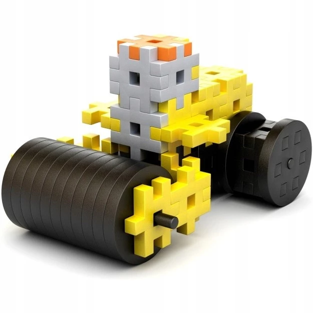 W opakowaniu klocki w sześciu kolorach z przewagą ostrzegawczej żółtej barwy, która przypomina, że to pojazdy konieczne na budowie.
