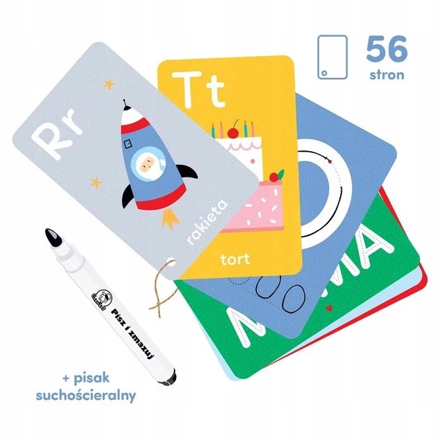 Wyjątkowa cecha: karty i pisak suchościeralny pozwalają na wielokrotne pisanie i zmazywanie.