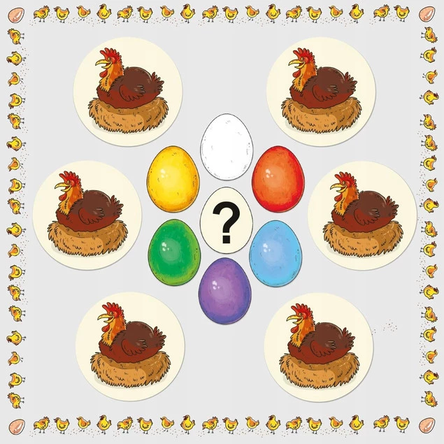 Sądzisz, że zbieranie jajek w kurniku to prosta sprawa? Kury nie ułatwią Ci zadania - wszystkie wyglądają jednakowo, często zmieniają gniazda i co najważniejsze, postanowiły znosić jajka w różnych kolorach. Staraj się zapamiętać, w jakich kolorach wysiaduje jajka każda z nich. Wygra osoba, która zbierze najwięcej jajek w kurniku.