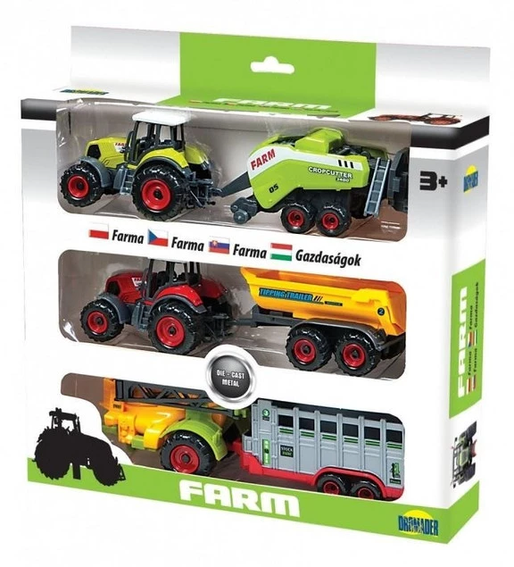 Zestaw 3 pojazdów Dromader to spełnienie marzeń małego, zakochanego w dużych maszynach rolniczych farmera i doskonały pomysł na prezent dla fana motoryzacji. W opakowaniu na dziecko czekają 3 wykonane z metalu samochody, które zapewnią mu mnóstwo fantastycznej zabawy. Odwzorowane w najdrobniejszych szczegółach pojazdy przeznaczone są dla dzieci od 3 roku życia.
