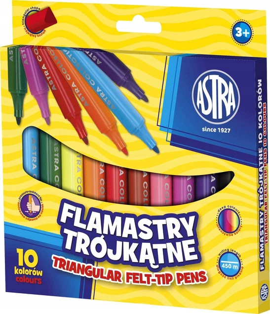 Flamastry Trójkątne Pisaki Szkolne JUMBO 10 Kolorów 3+ Astra