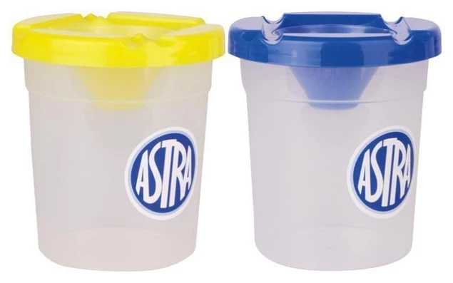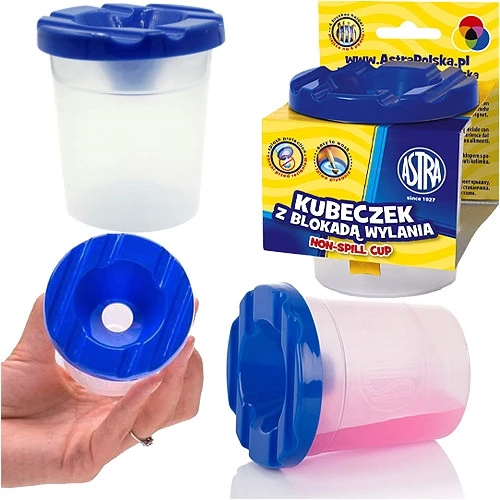 Kubeczek "niekapek" do malowania farbami Astra �👉 Idealny do płukania pędzli. 👉 Pokrywka z systemem lejka zabezpieczającym przed rozlaniem wody. 👉 Na wieczku specjalne rynienki na odłożenie pędzelków. 👉 Idealny dla młodszych dzieci. 👉 Pomaga zachować czystość przy kreatywnych zabawach z farbami. 👉 Znajdzie zastosowanie w szkole, przedszkolu i domu. 👉 Wysoka jakość wykonania. | ![]() |