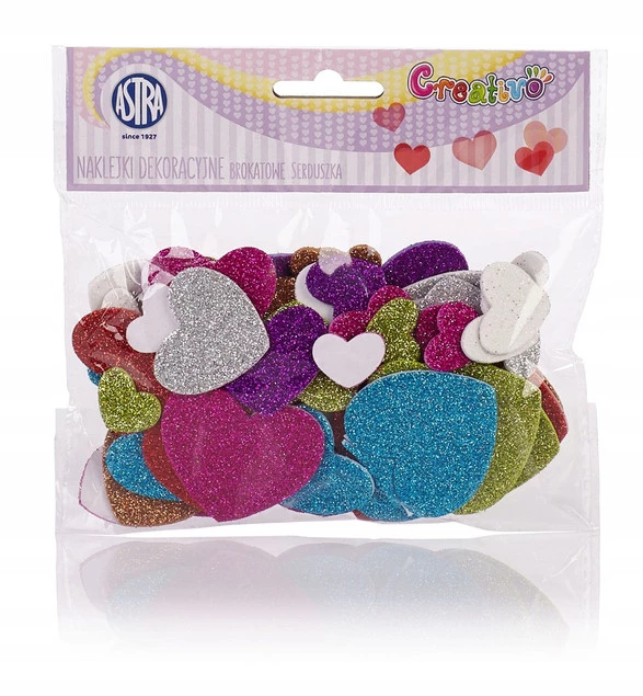 Złóż zapytanie o cenę hurtową produktu |Naklejki Dekoracyjne Piankowe Brokatowe SERCA Walentynki Astra