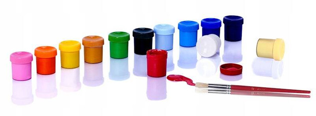 Farby plakatowe w zakręcanych pojemniczkach mają intensywne i nasycone kolory