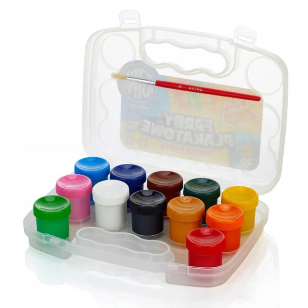 Farby Plakatowe Szkolne Walizka 12 Kolory 20 ml + Pędzelek 3+ Astra