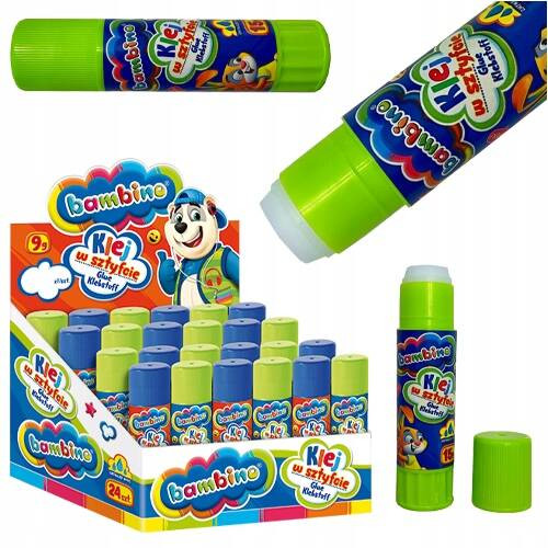 Złóż zapytanie o cenę hurtową produktu |Klej W Sztyfcie Szkolny Biurowy Mocny Zmywalny Bezbarwny 15g Bambino