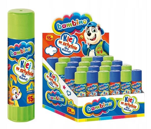 Złóż zapytanie o cenę hurtową produktu |Klej W Sztyfcie Szkolny Biurowy Mocny Zmywalny Bezbarwny 15g Bambino