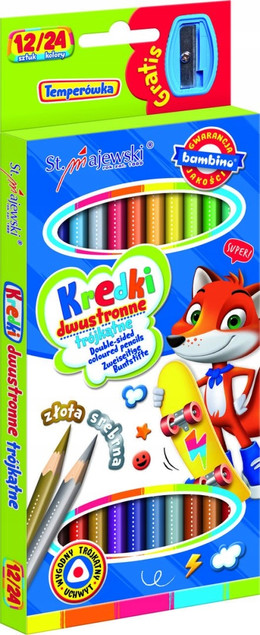 Kredki Szkolne Trójkątne Dwustronne 24 Kolory 12 Sztuk Temperówka Bambino