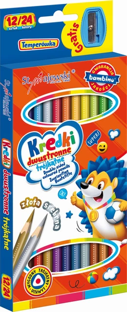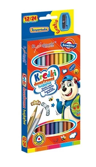 Kredki Szkolne Trójkątne Dwustronne 24 Kolory 12 Sztuk Temperówka Bambino