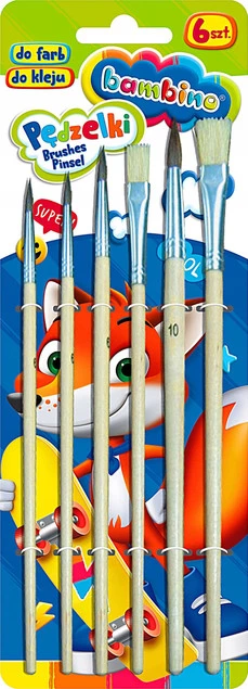 Bambino Pędzle Pędzelki Szkolne Zestaw Do Farb 6 Sztuk Bambino