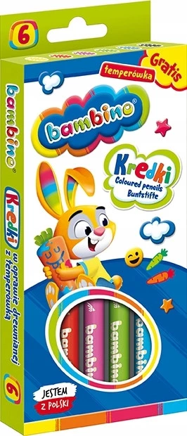 Produkowane są w Polsce, w zgodności z dyrektywą Parlamentu Europejskiego i Rady w sprawie bezpieczeństwa zabawek oraz rozporządzeniem Ministerstwa Gospodarki w sprawie zasadniczych wymagań dla zabawek, co gwarantuje bezpieczeństwo kredek Bambino.