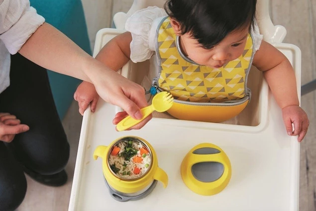 • silikonowe uchwyty ułatwiają spożywanie posiłku w różnych warunkach;