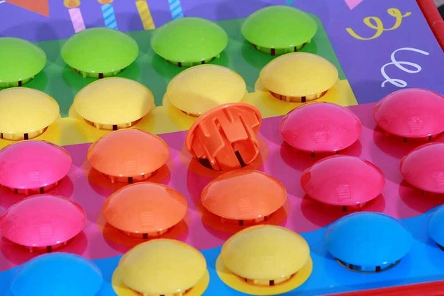 - Układanka stymuluje motorykę małej ręki - sprawność dłoni i paluszków. Zestaw zawiera wygodne pudełko do przechowywania, aż 45 kolorowych guzików i 12 różnych wymiennych plansz.