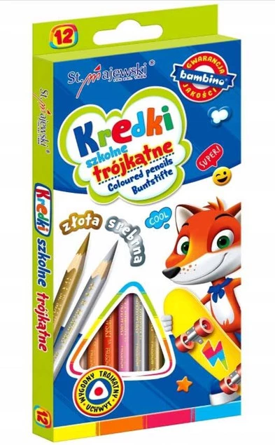 Złóż zapytanie o cenę hurtową produktu |Kredki Trójkątne Ołówkowe Szkolne 12 Kolorów + Złoty i Srebrny Bambino