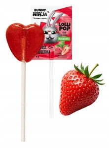 BUNNY NINJA Lizak TRUSKAWKOWY Bez Cukru Dla Dzieci Serduszko 6g