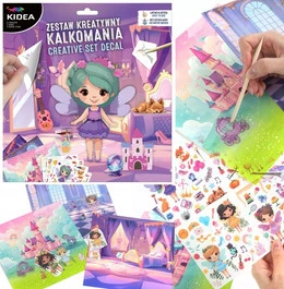 Naklejki Transferowe ZESTAW KREATYWNY KALKOMANIA 3 Arkusze 83 El. 3+ Kidea